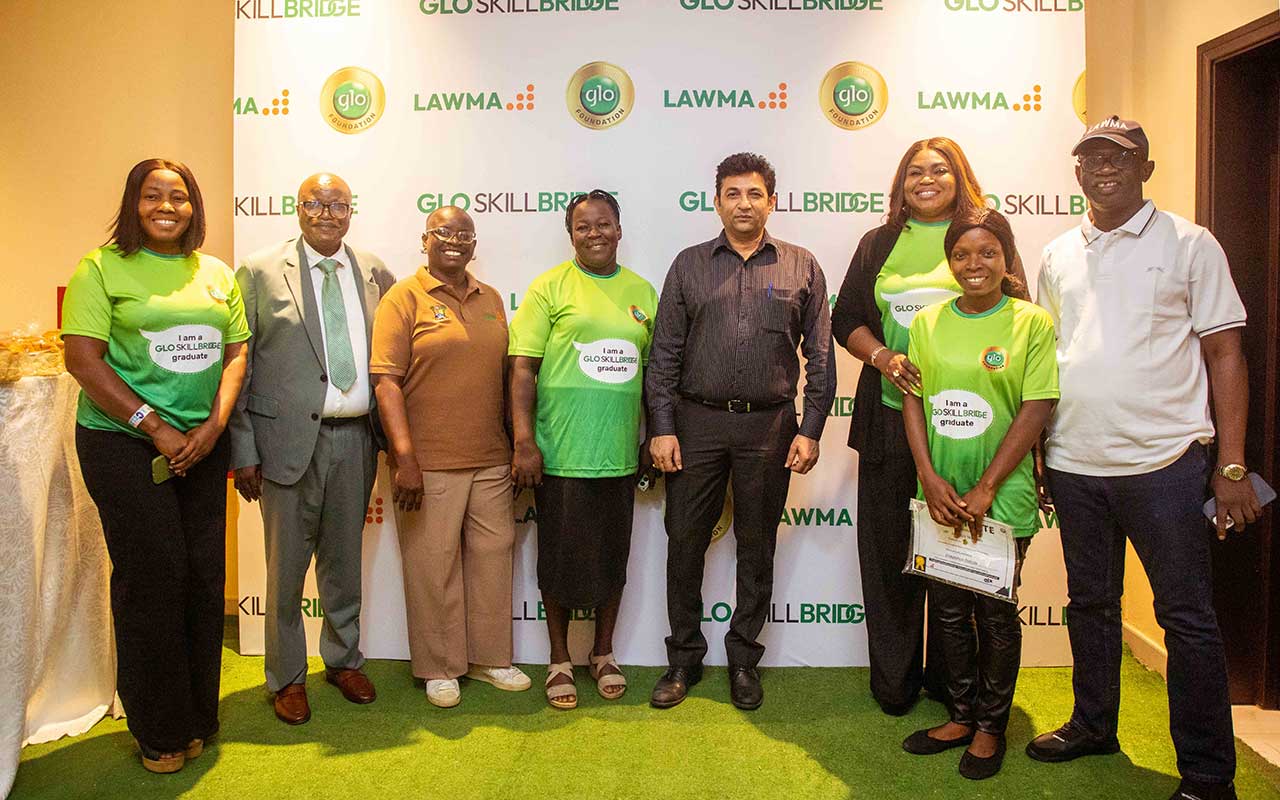 Globacom’s social responsibility arm, Glo Foundation, held a graduation ceremony in Lagos for the first set of participants in its Skillbridge training programme. The programme is designed to equip Lagos Waste Management Authority street sweepers with valuable soft and digital skills.