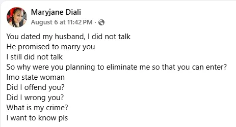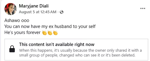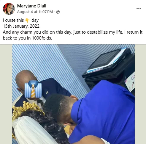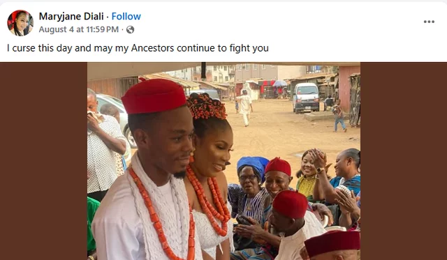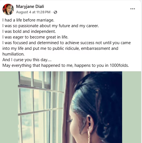 Maryjane Diali, a Nigerian woman, has accused her ex-husband of cursing the day she wed him.