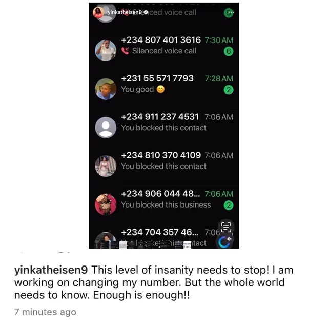 Yinka claimed in her post that May had given her admirers her number so they could contact and taunt her.