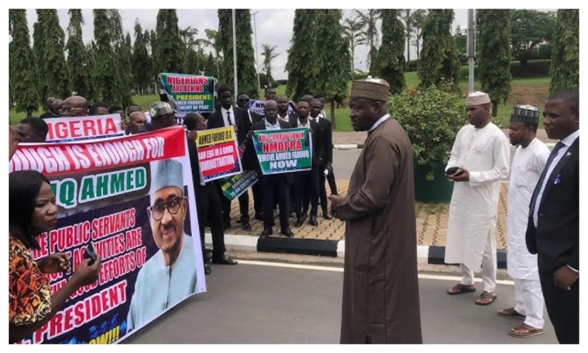 The protest led by a group of lawyers demanding an investigation into corruption allegations against Farouk Ahmed, Managing Director of the Nigerian Midstream and Downstream Petroleum Regulatory Authority (NMDPRA), continued on Wednesday as the group submitted a formal petition to the House of Representatives.