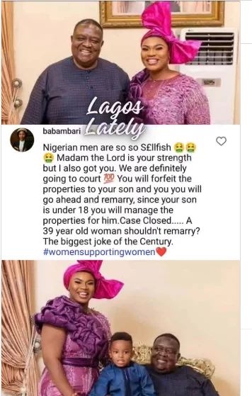 However, there is a personal condition attached to the inheritance: if you decide to get married again, you will automatically forfeit these assets.