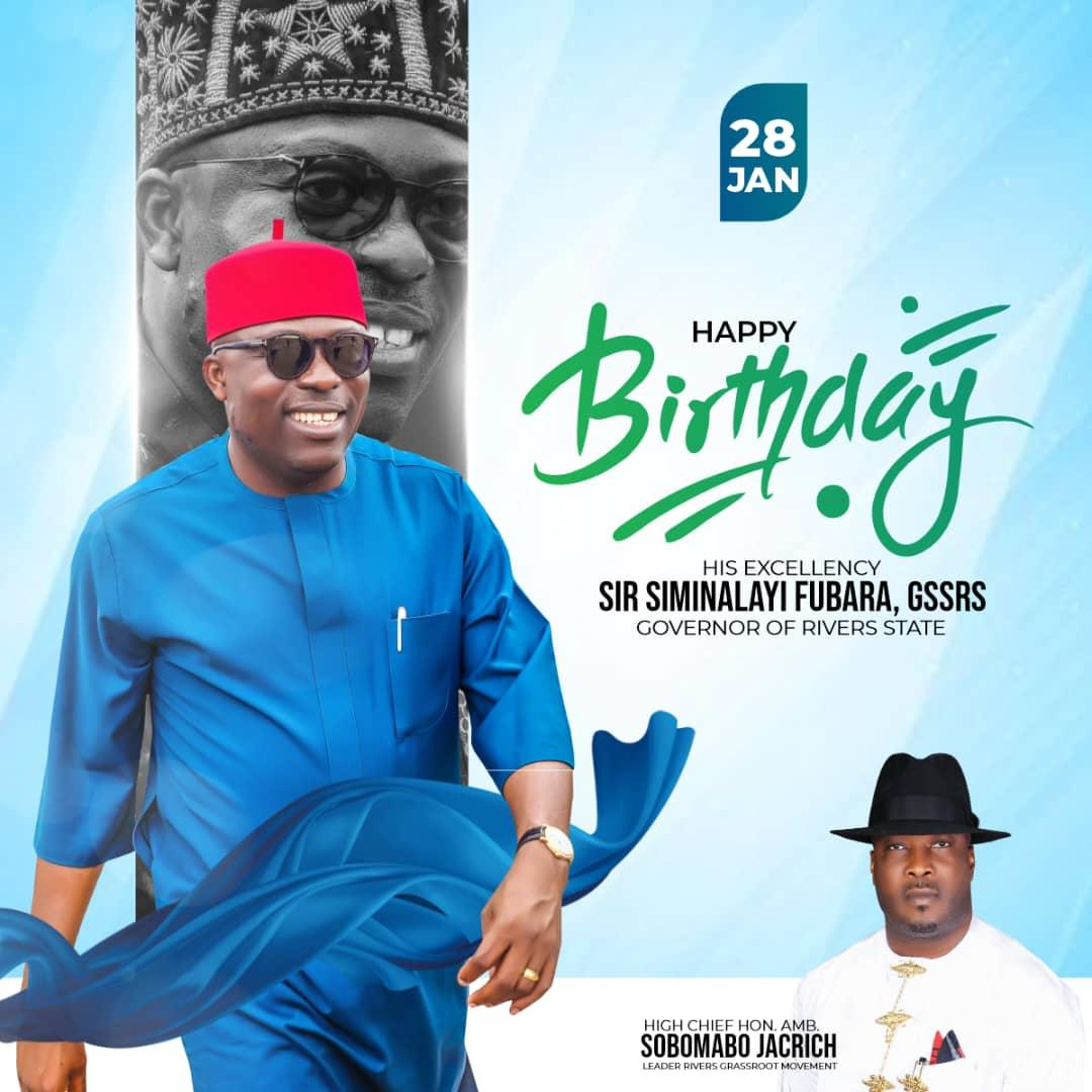 The Rivers Grassroot Movement (RGM) has sent heartfelt birthday wishes to Sir Siminalayi Fubara, the Executive Governor of Rivers State, praising his leadership approach and the progress he has fostered throughout the state.