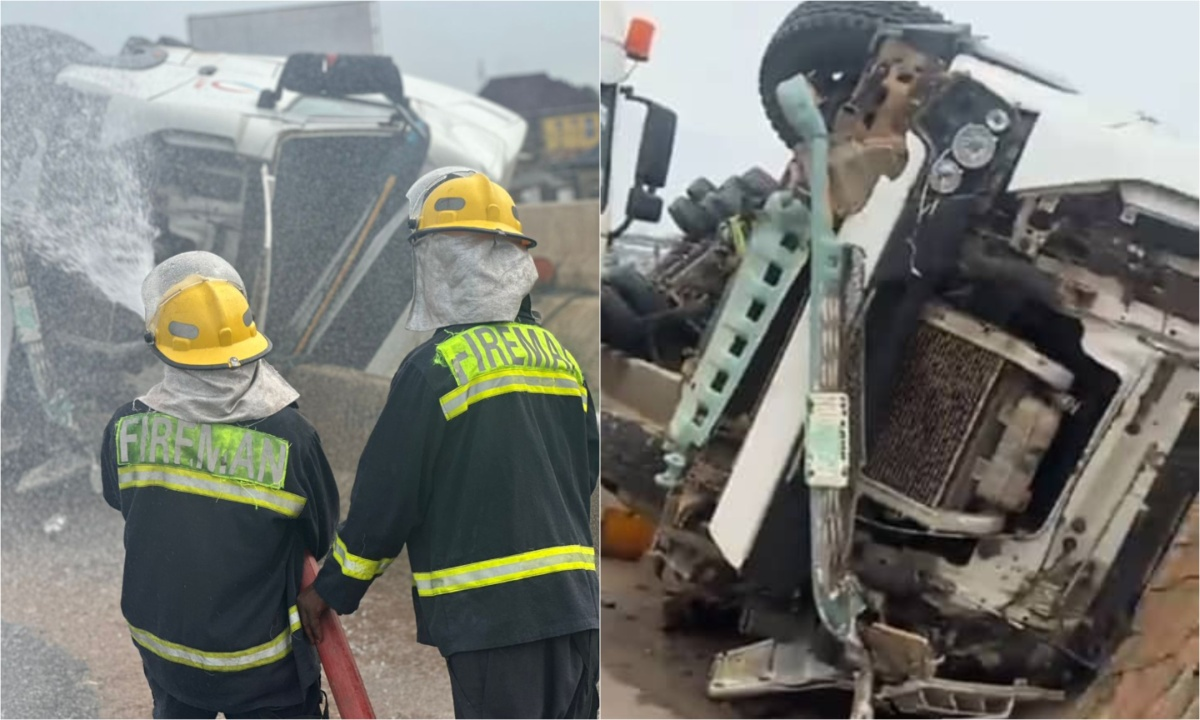 On Sunday, our correspondent learned that the tanker, registered KMC 692 ZE, swerved off the road and into a road divider after losing control while in motion.