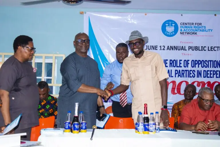This was said over the weekend in Uyo by Otuekong Franklyn Isong, the Director of CHRAN, at an Annual Public Lecture with the theme “The Role of Opposition Political Parties in Deepening Democracy” in honor of Nigeria’s 2025 Democracy Day.