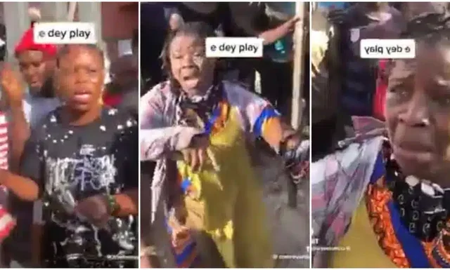 The assembled audience persisted in pressuring the buddy, identified in the video as Chioma, to reveal the truth despite her repeated denials of knowing the insane woman.