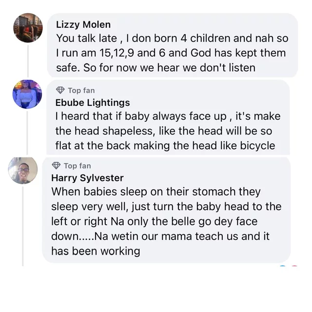 However, it appears that Nigerian mothers don’t agree with him. They contend that their moms taught them to put their infants to sleep with their faces down, and that this method has been effective for a long time. Additionally, they contend that babies who sleep on their bellies rather than their backs typically sleep better and for longer.