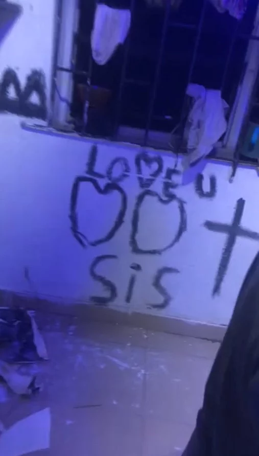 The brother had selected a combination of symbols that looked like a cross, a flower, and a wheel. In order to show his sister how much he cared, he added a personal touch by adding the words “Love you, sis” along with two asymmetrical hearts and another cross sign.