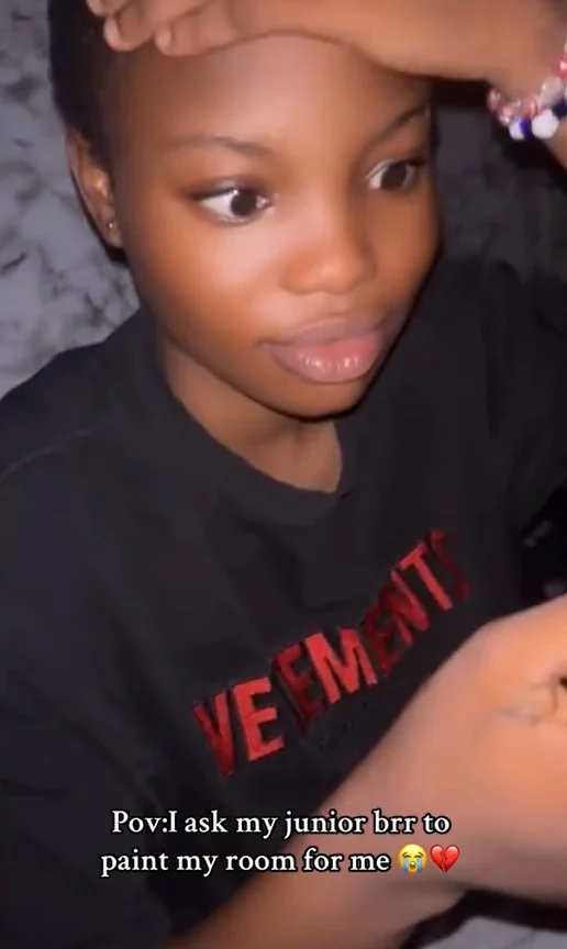 A woman named @busola035 released a video on the internet that showed the surprising result of requesting her younger brother to paint her room.