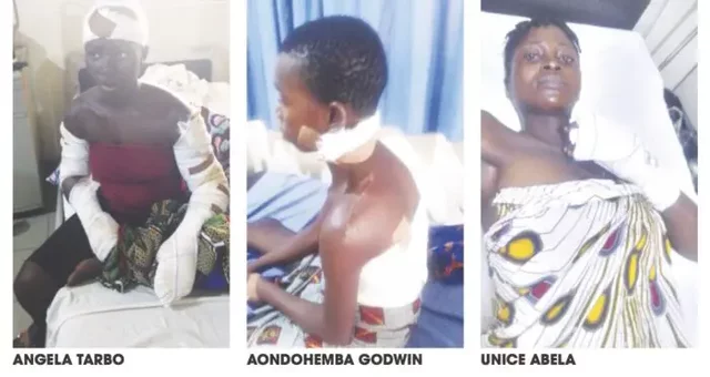 According to reports by the Sun News, Angela Tarbo said, “They started shooting and slaughtering people. When they reached me, they cut me on my head and my hand with a cutlass and poured petrol on the shop. Then they set the store on fire, and I struggled to escape with fire on my body.”